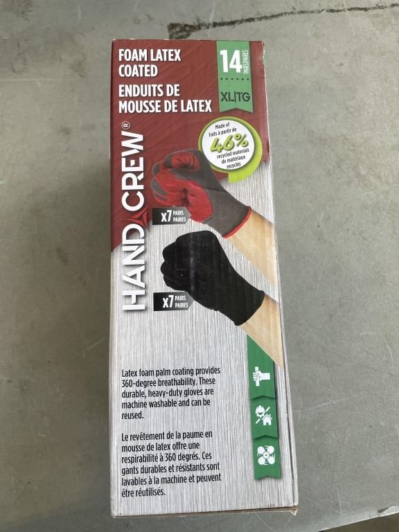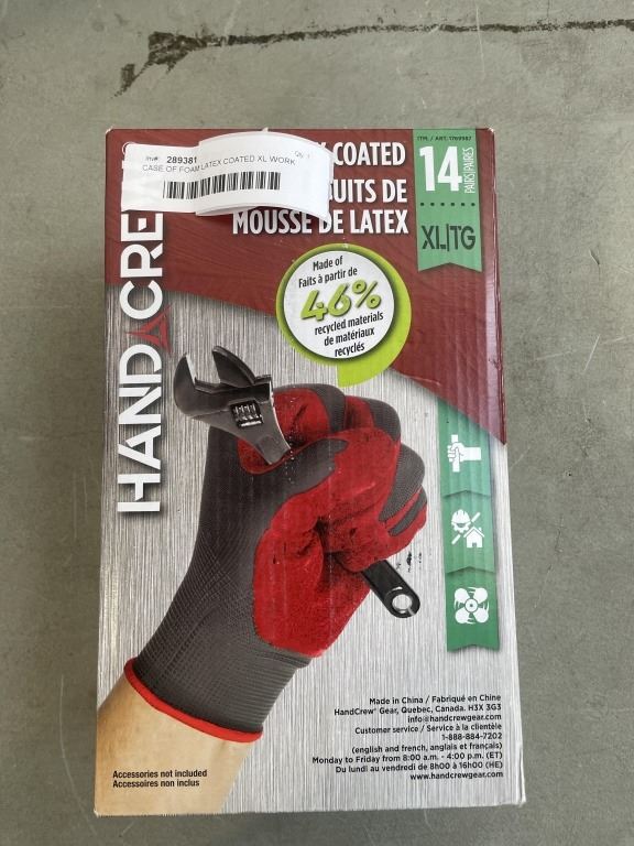 CASE OF FOAM LATEX COATED XL WORK GLOVES -14 PAIRS PER BOX