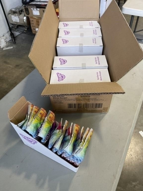 CASE OF HUER RED BERRIES, 72 BAGS 75GRAMS EACH, 6 DISPLAY BOXES OF 12,
