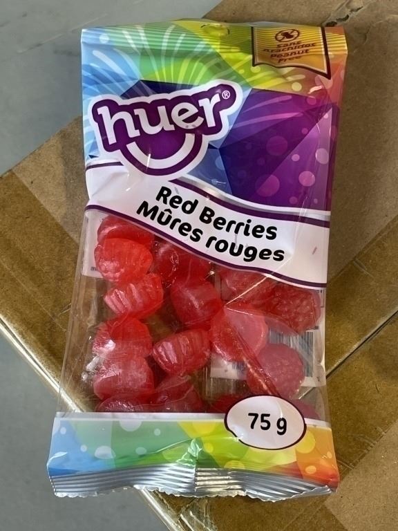 CASE OF HUER RED BERRIES, 72 BAGS 75GRAMS EACH, 6 DISPLAY BOXES OF 12,