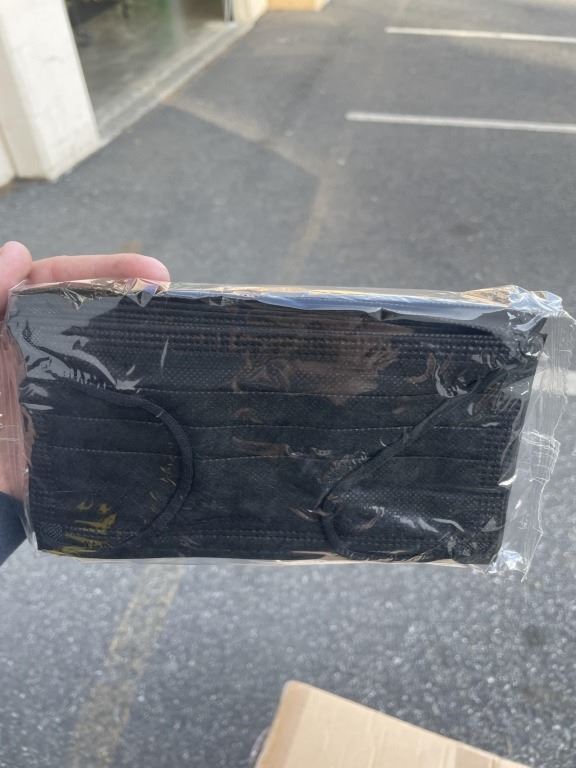 CASE OF NEW BLACK DISPOASBLE PROTECTIVE MASKS