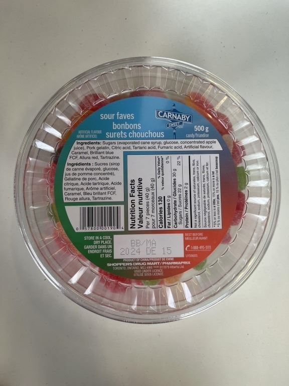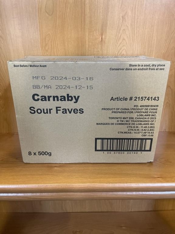 CASE OF NEW SOUR FAVS CANDY, 8 TUBS, 500G EACH BB DEC/2024