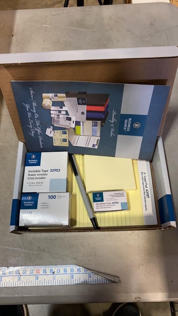 CASE OF OFFICE SUPPLY KITS - EACH KIT INCLUDES PEN, PAPER CLIPS, TAPE, POST IT NOTES, LEGAL PAD AND MINI BINDER CLIPS