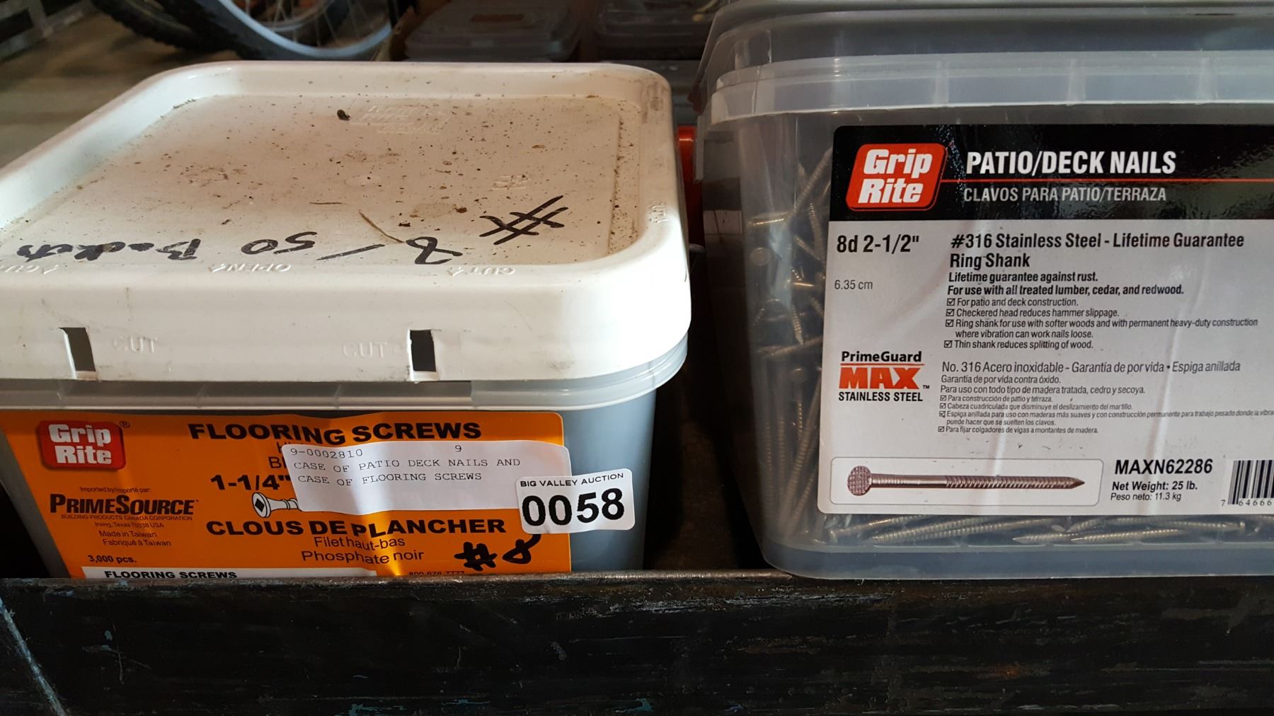 CASE OF PATIO DECK NAILS AND CASE OF FLOORING SCREWS