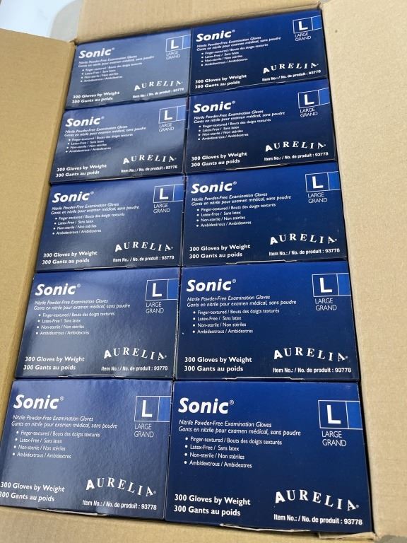CASE OF SONIC SIZE LARGE NITRILE GLOVES, 3000 PER BOX