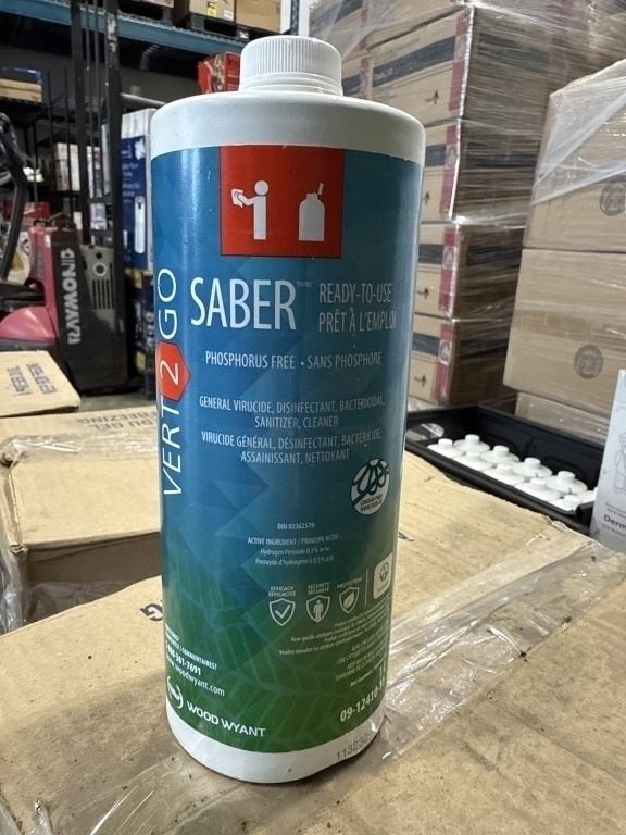 CASE OF VERT2GO SABER READY TO USE SANITIZER CLEANER, 12 X 1L JUGS PER CASE