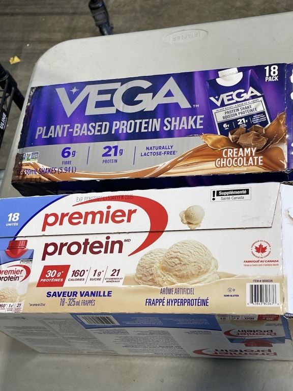 CASE OF18 VEGA CHOCOLATE PROTEIN SHAKES AND CASE OF APPROX 16 VANILLA PROTEIN SHAKES