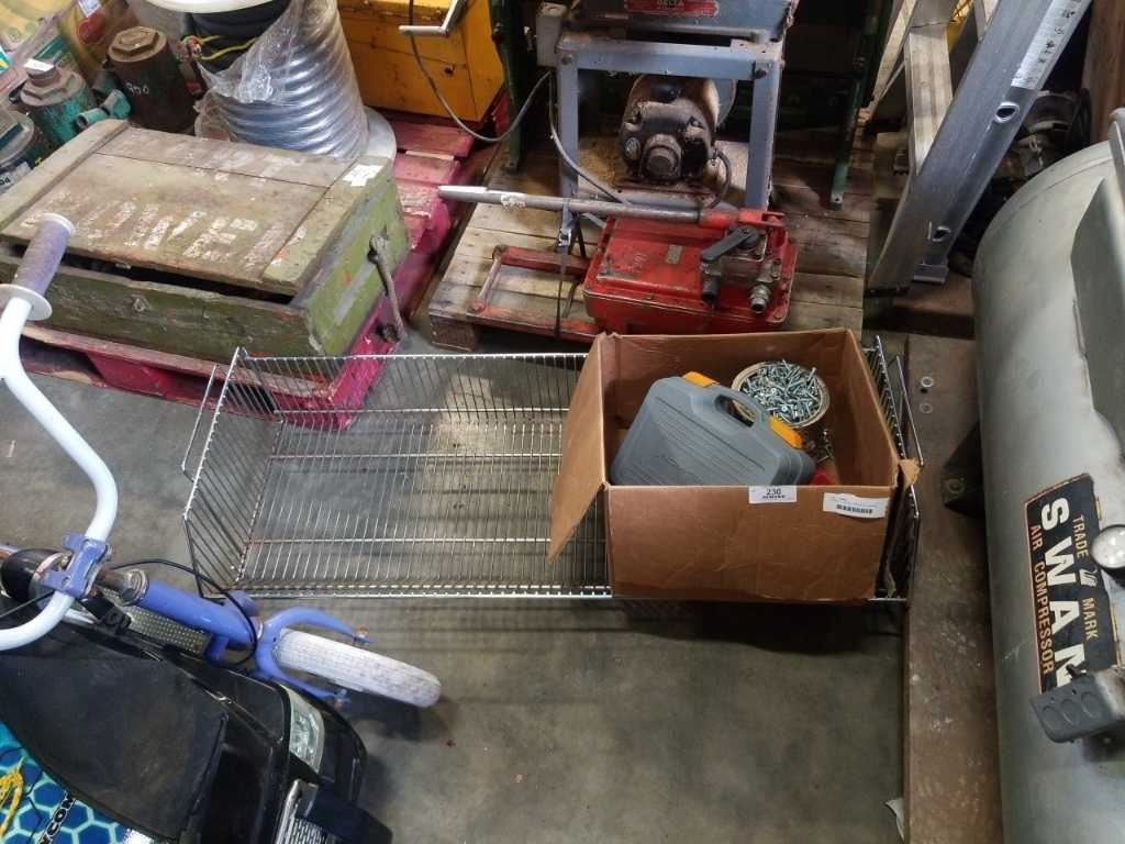 CASED CO2 GAUGE AND BOTTLE, ND BAG OF SCREWS, AND METAL STORAGE RACK