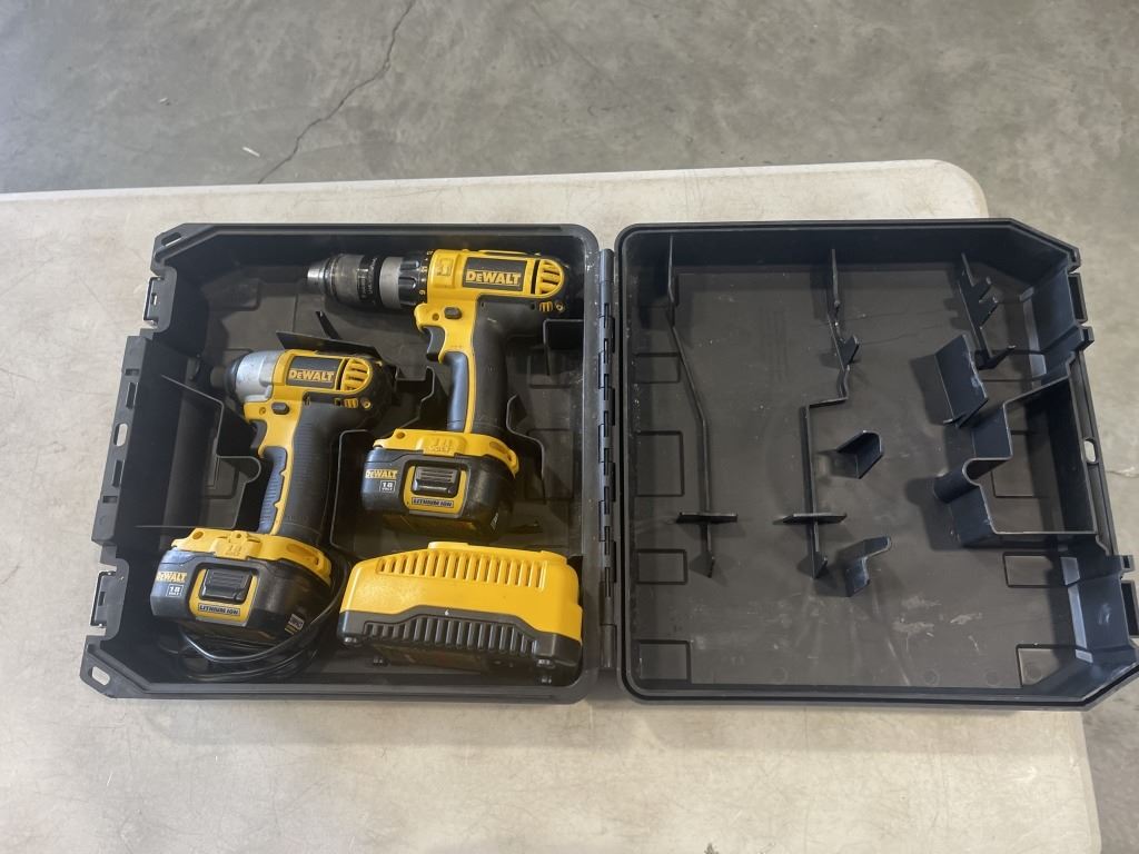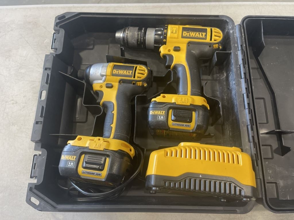 CASED DEWALT 18V DRILL, IMPACT AND CHARGER WITH 2 BATTERIES