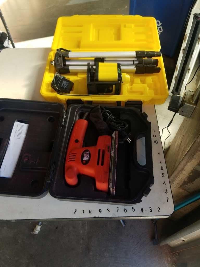 CASED LASER LEVEL WITH BLACK AND DECKER SANDER BOTH TESTED AND WORKING