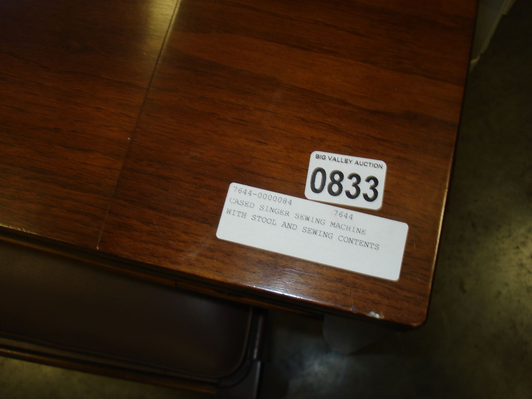 CASED SINGER SEWING MACHINE WITH STOOL AND SEWING CONTENTS