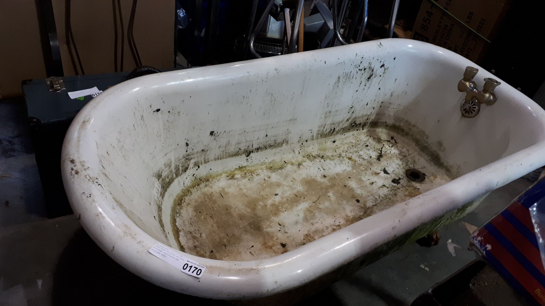 CAST IRON BATHTUB IN GOOD ORIGINAL PORCELAIN AND ORIGINAL FEET