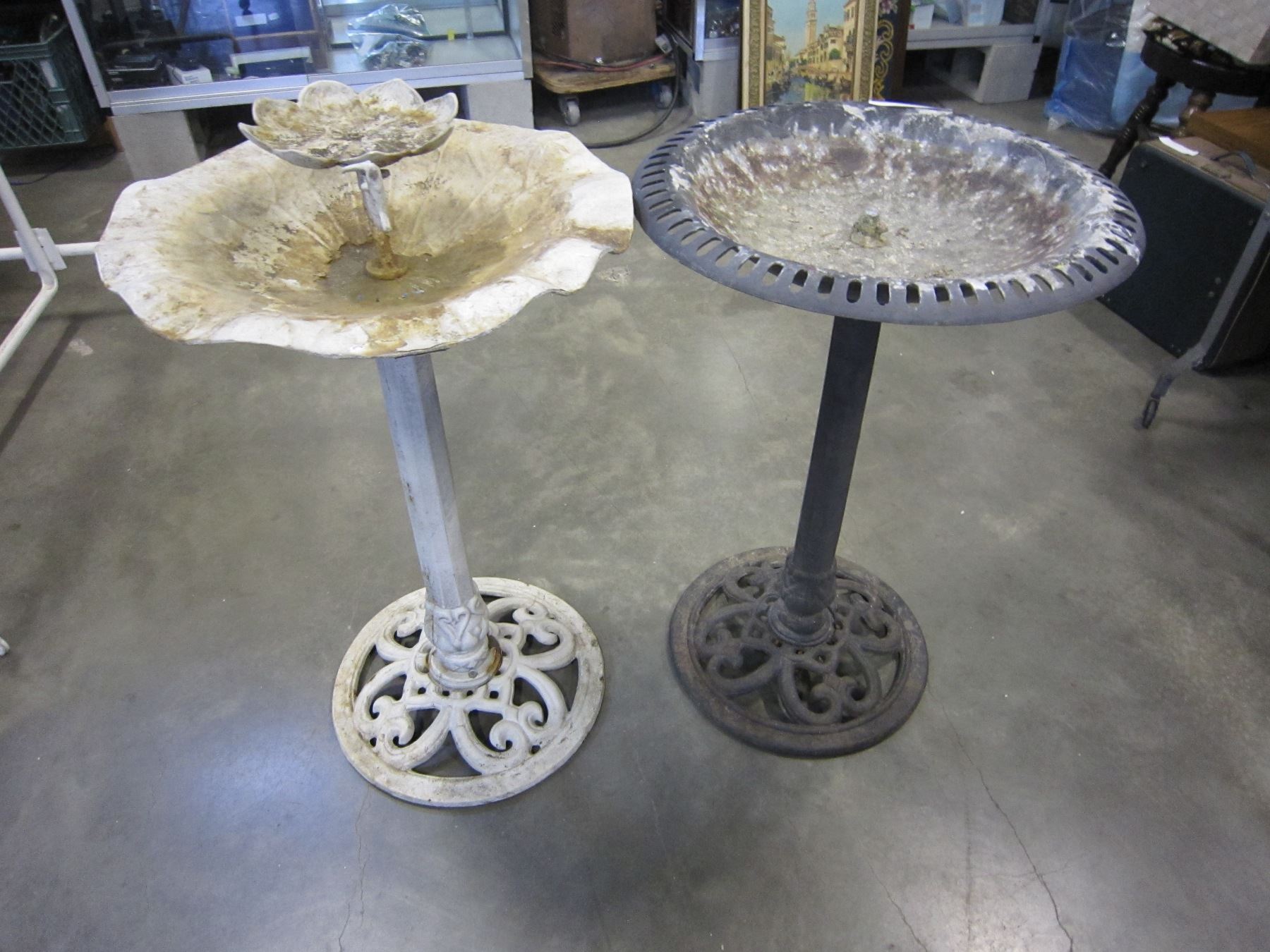 CAST IRON BIRD BATH AND WHITE CAST IRON BIRD BATH