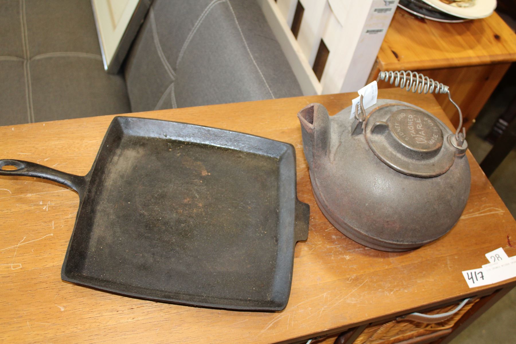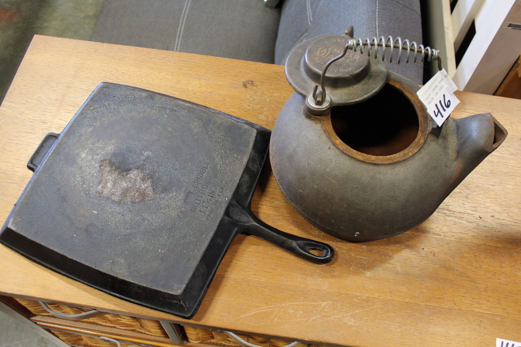 CAST IRON PAN AND KETTLE BOTH MADE IN USA