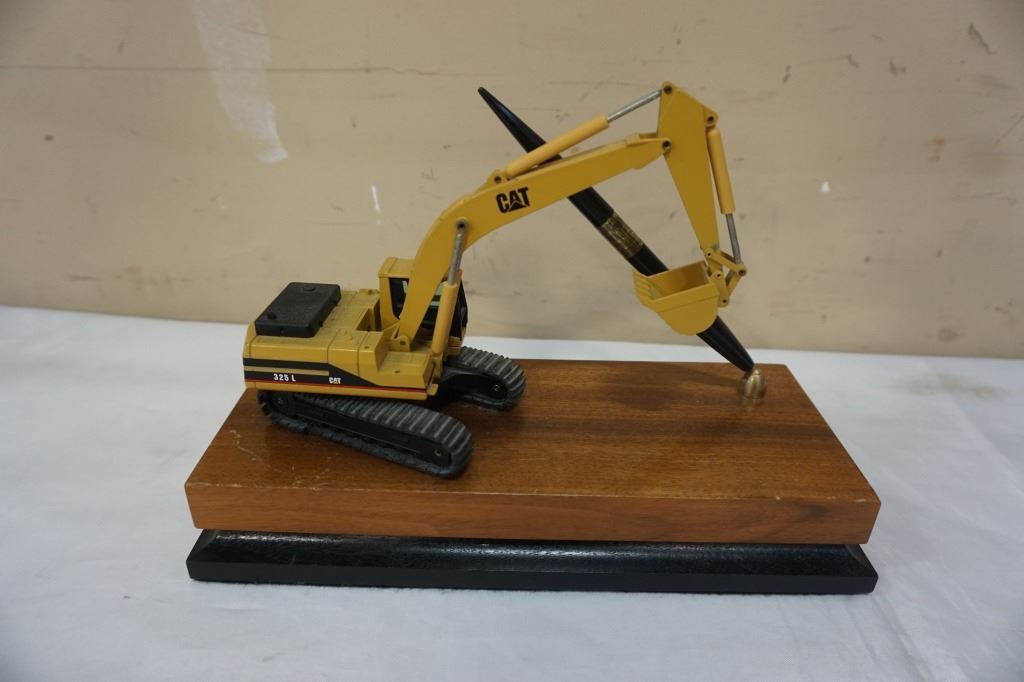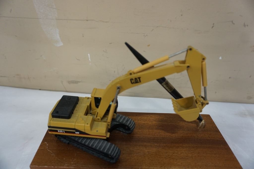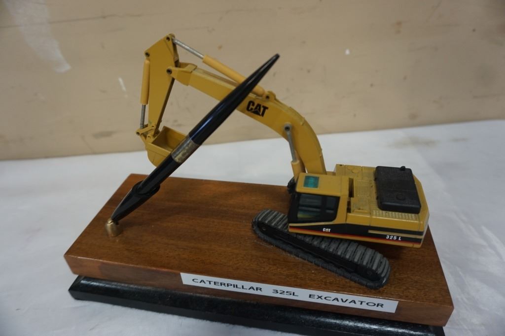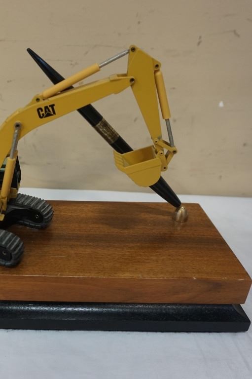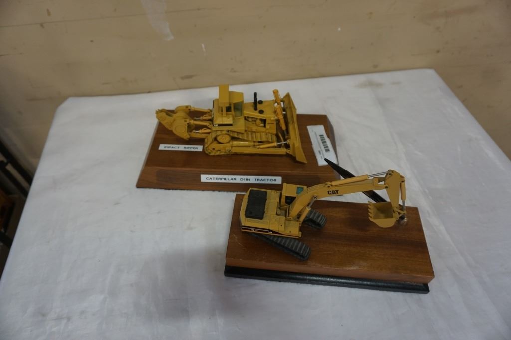 CATERPILLAR AND EXCAVATOR FIGURES MOUNTED ON BOARDS