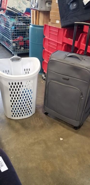 CCS GREY ROLLING SUITCASE AND ROLLING LAUNDRY HAMPER