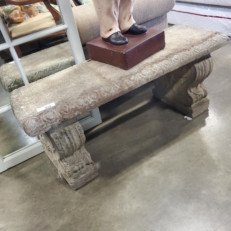 CEMENT 3PC GARDEN BENCH, 40 INCH X 14 INCH