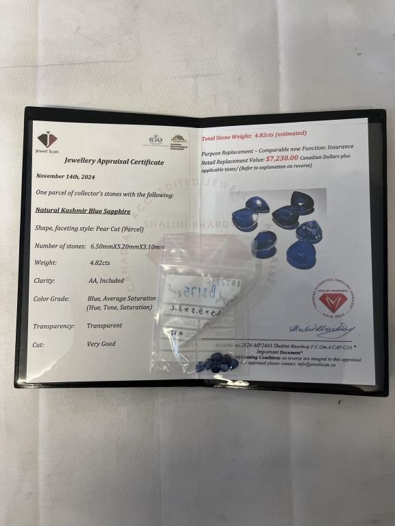 CERTIFIED 4.87CT BLUE SAPPHIRE GEMSTONE PARCEL, $7230 APPRAISAL