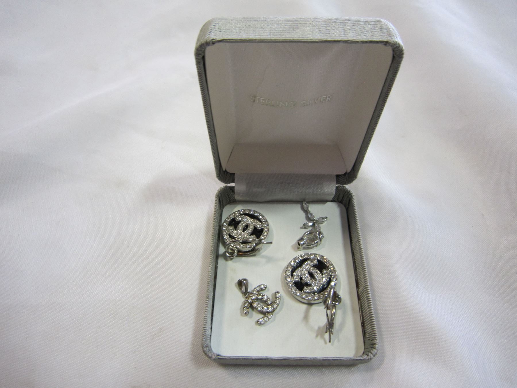 CHANNEL EARRINGS AND PENDANT AND CROSS PENDANT
