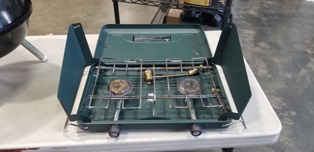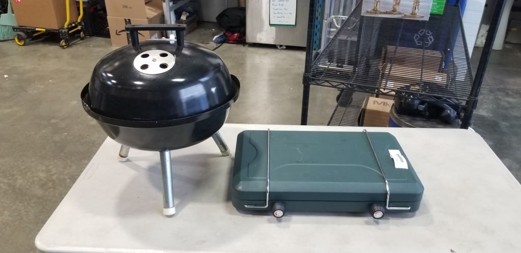 CHARCOAL BARBECUE AND PROPANE CAMP STOVE