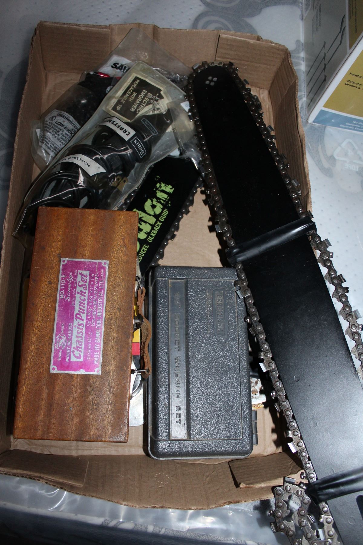 CHASSIS PUNCH SET AND CHAINSAW BLADES AND ELECTRIC ENGRAVER AND SOCKET SET