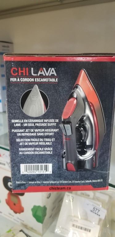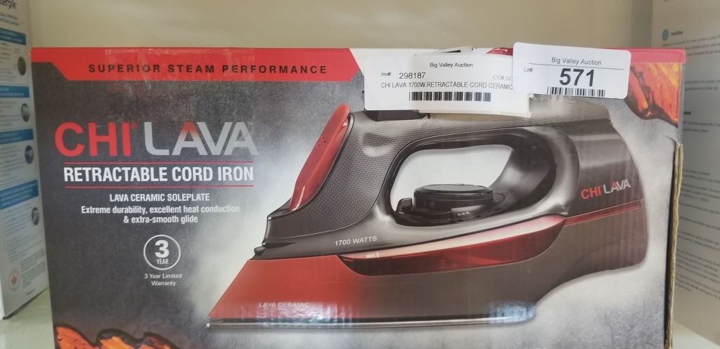 CHI LAVA 1700W RETRACTABLE CORD CERAMIC SOLEPLATE STEAM IRON - TESTED WORKING, RETAIL $154