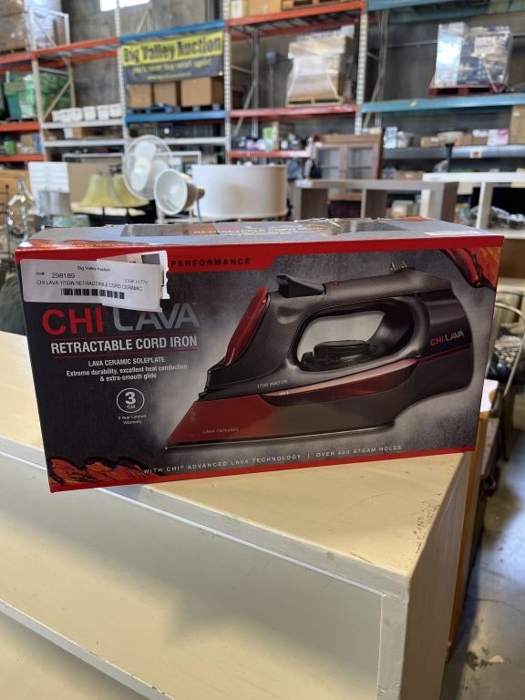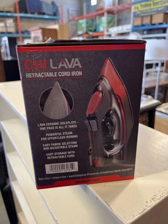 CHI LAVA 1700W RETRACTABLE CORD CERAMIC SOLEPLATE STEAM IRON - TESTED WORKING, RETAIL $154