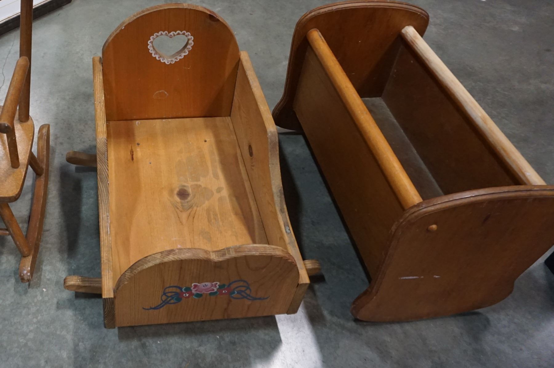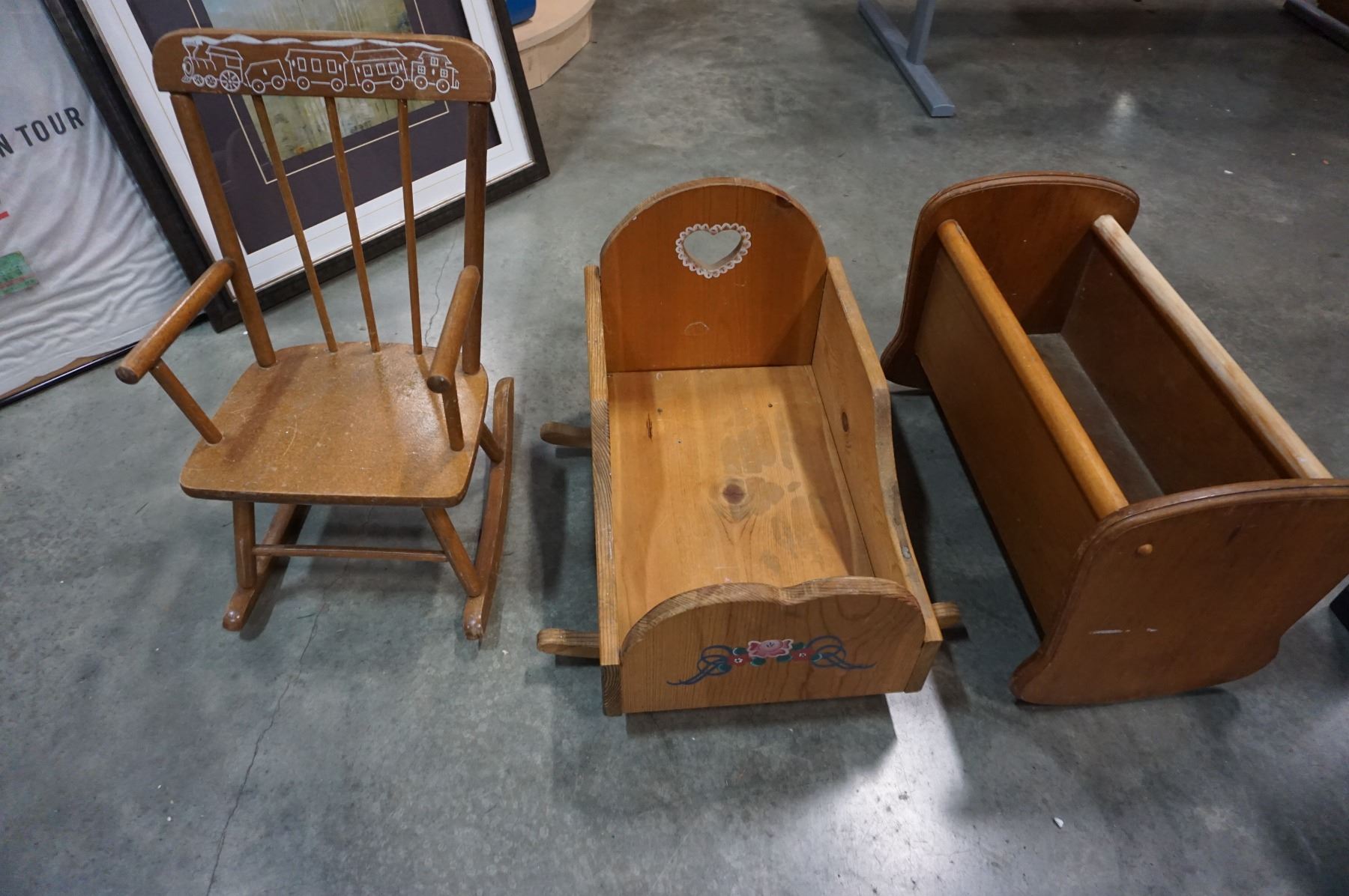 CHILDS ROCKER AND 2 DOLL ROCKERS