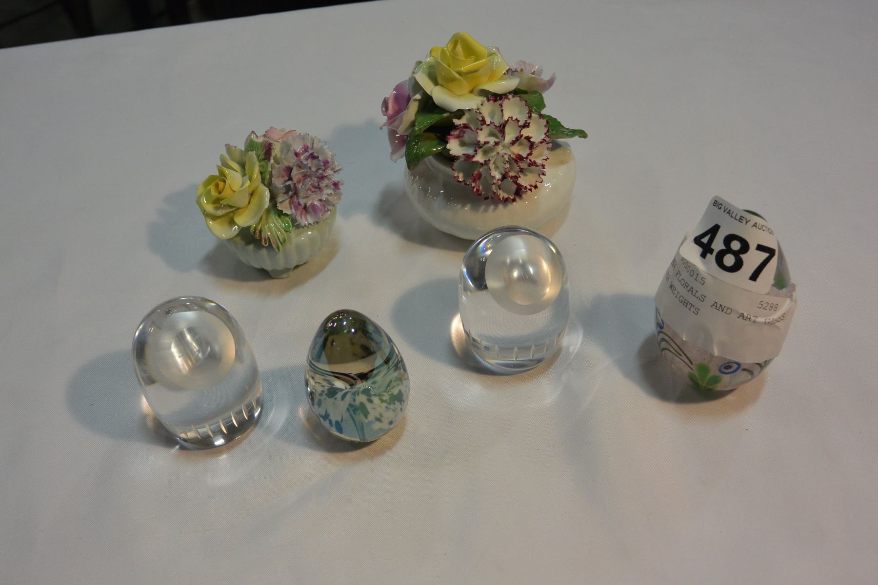 CHINA FLORALS AND ART GLASS PAPER WEIGHTS