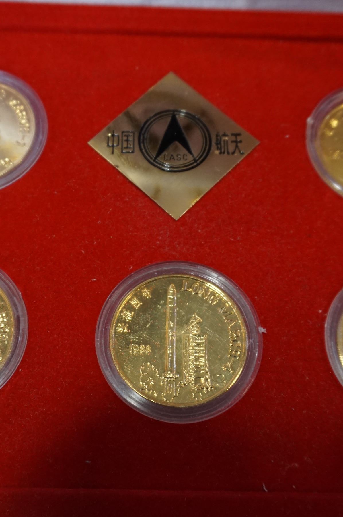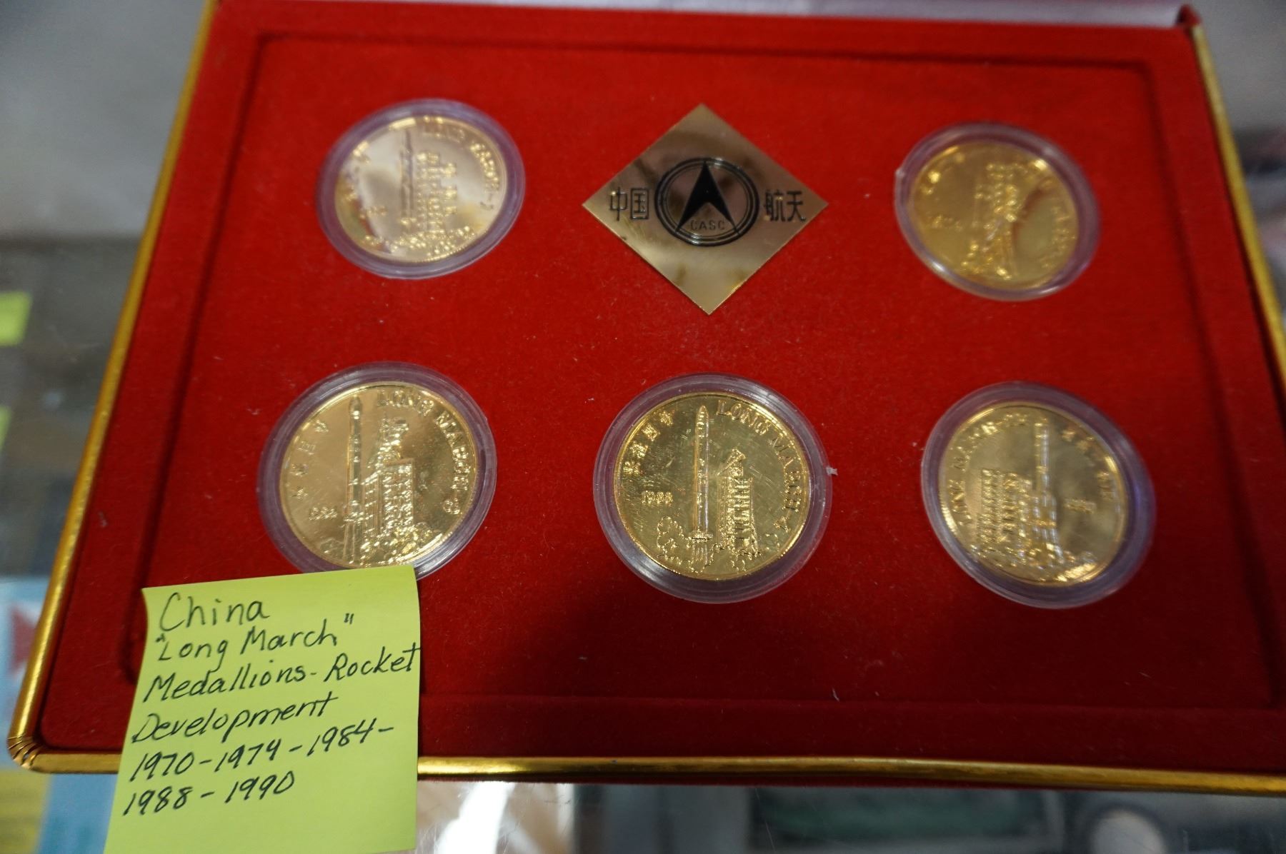 CHINA LONG MARCH MEDALLIONS, 1970,74,84,88,90 SHOWING ROCKET DEVELOPMENT