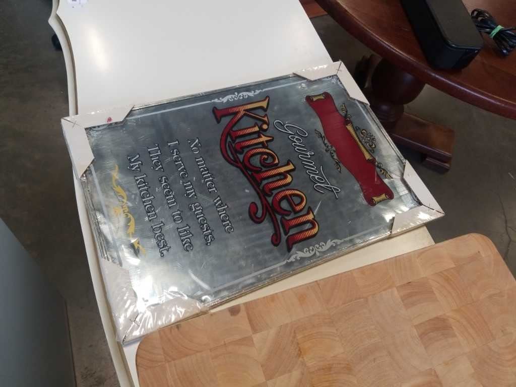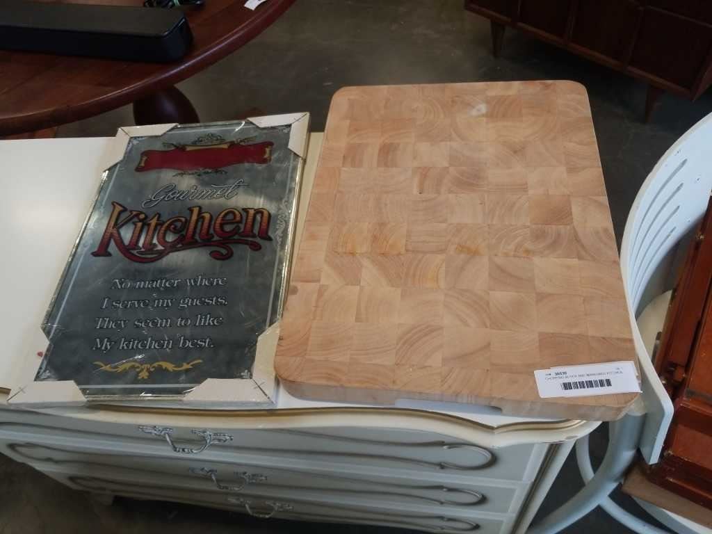 CHOPPING BLOCK AND MIRRORED KITCHEN SIGN