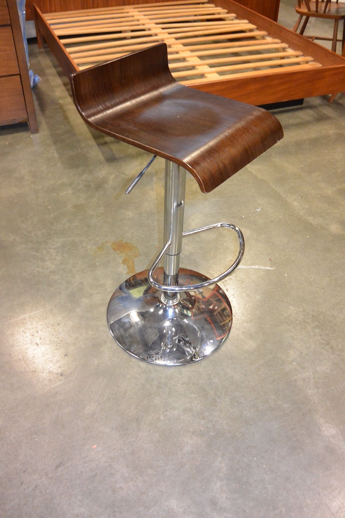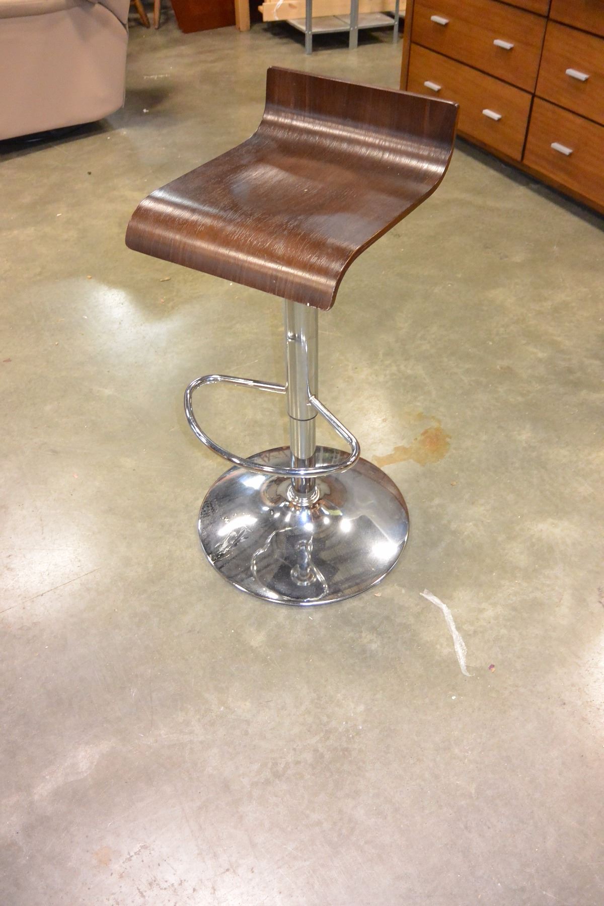 CHROME AND BENTWOOD GAS LIFT BAR STOOL