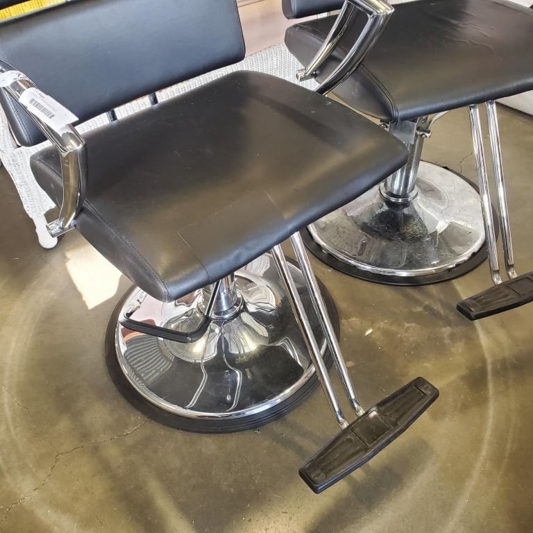 CHROME AND BLACK ADJUSTABLE BARBERS CHAIR