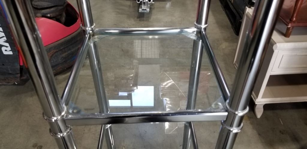 CHROME AND GLASS 4 TIER DISPLAY SHELF