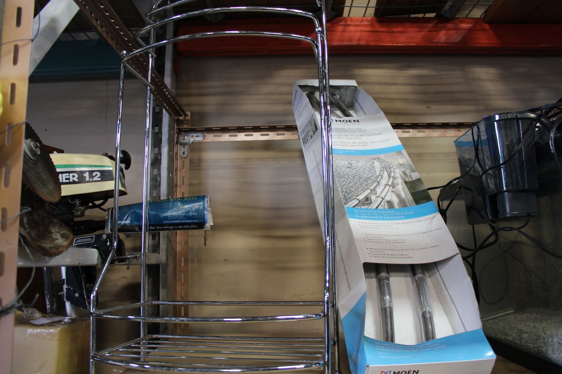 CHROME BATHROOM RACK AND DOUBLE SHOWER CURTAIN ROD