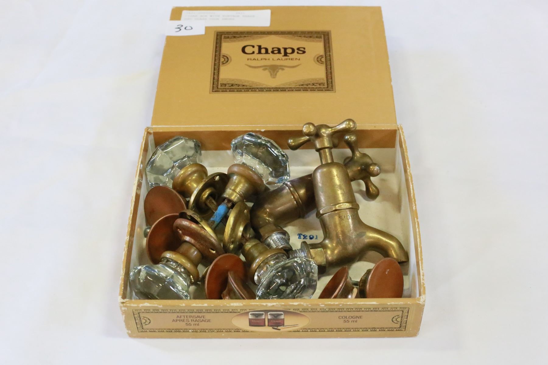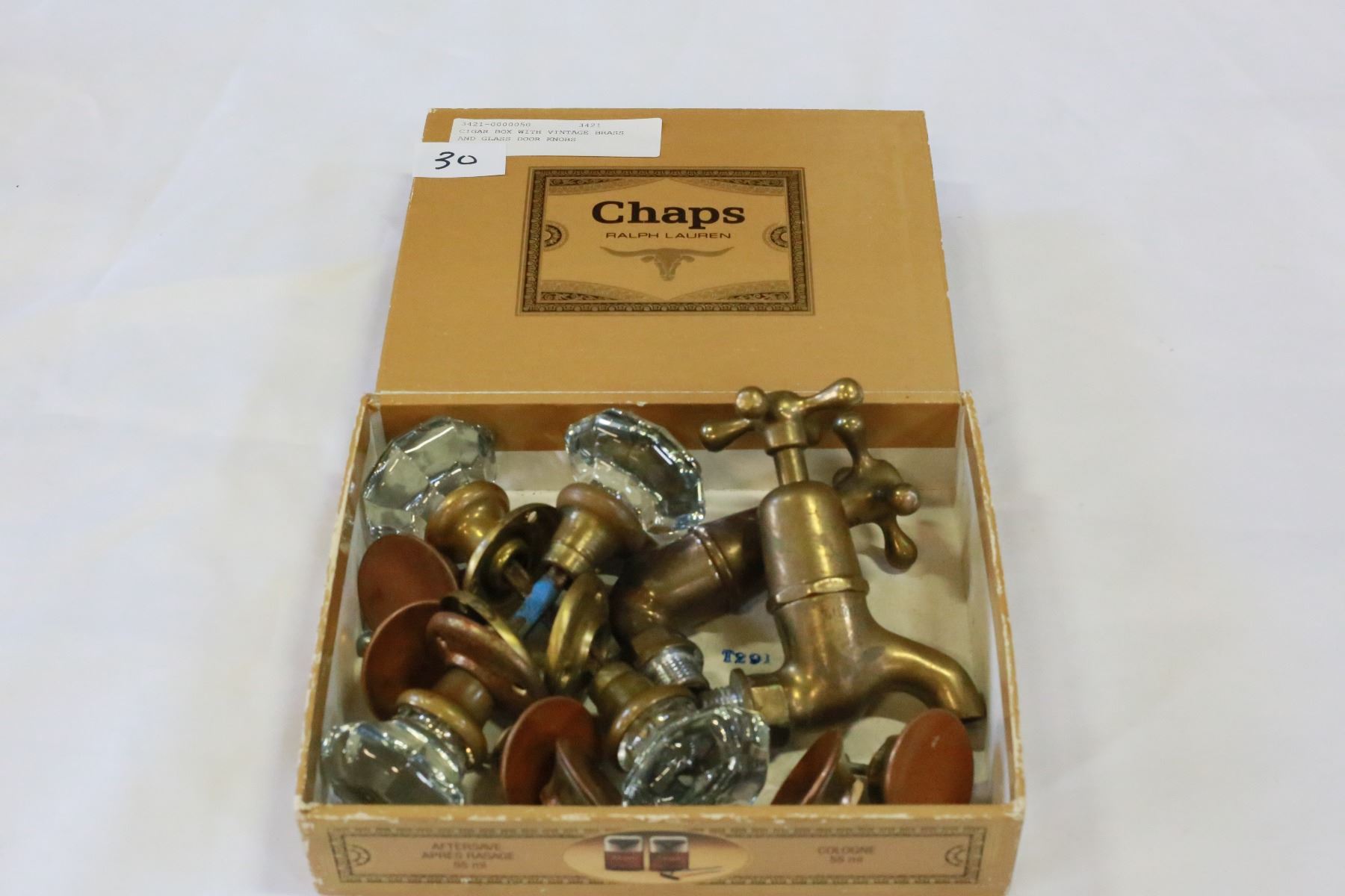 CIGAR BOX WITH VINTAGE BRASS AND GLASS DOOR KNOBS