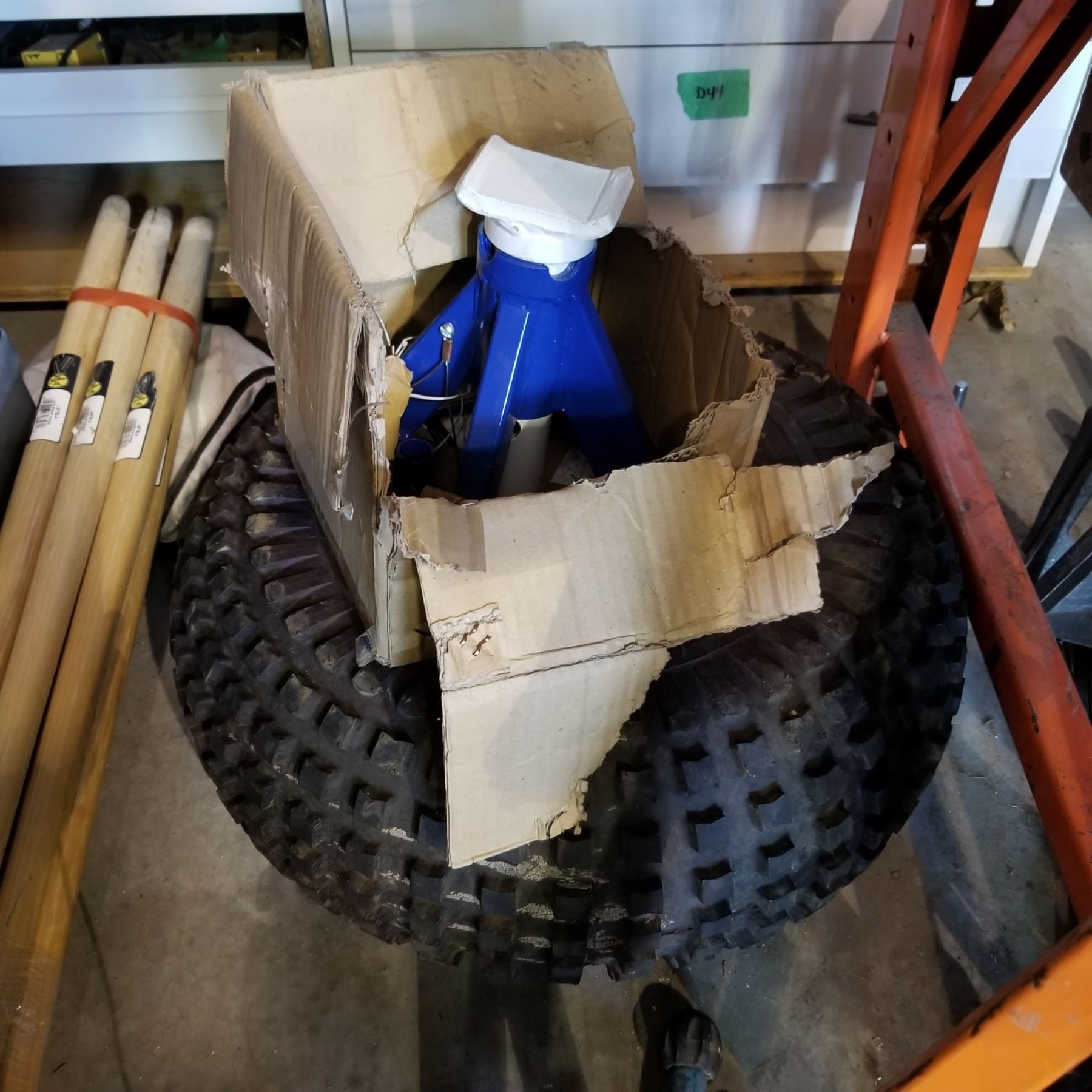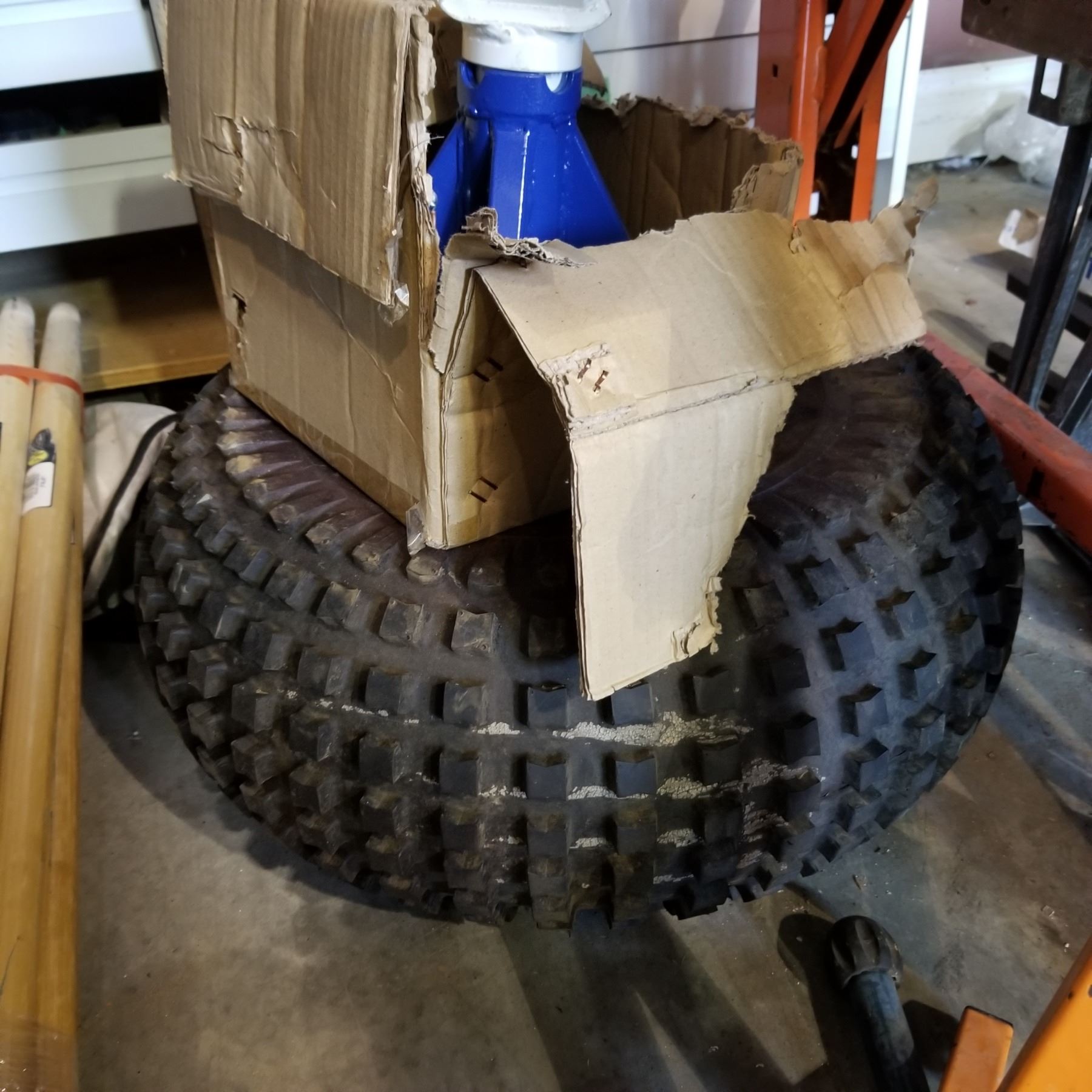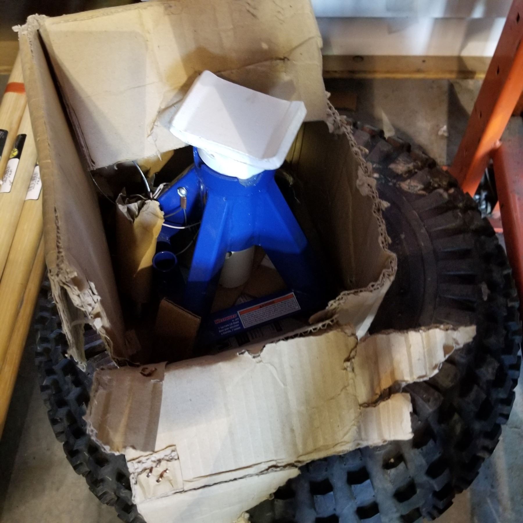 CITRUSE ATV TIRE, BUNDLE OF SHOVEL HANDLES AND 1 TON FORKLIFT JACK STAND