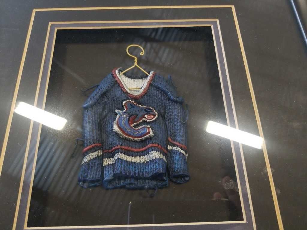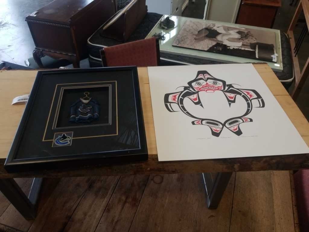 CLARENCE WELLS DOGFISH PRINT AND CANUCKS FRAMED STAR HANGERS