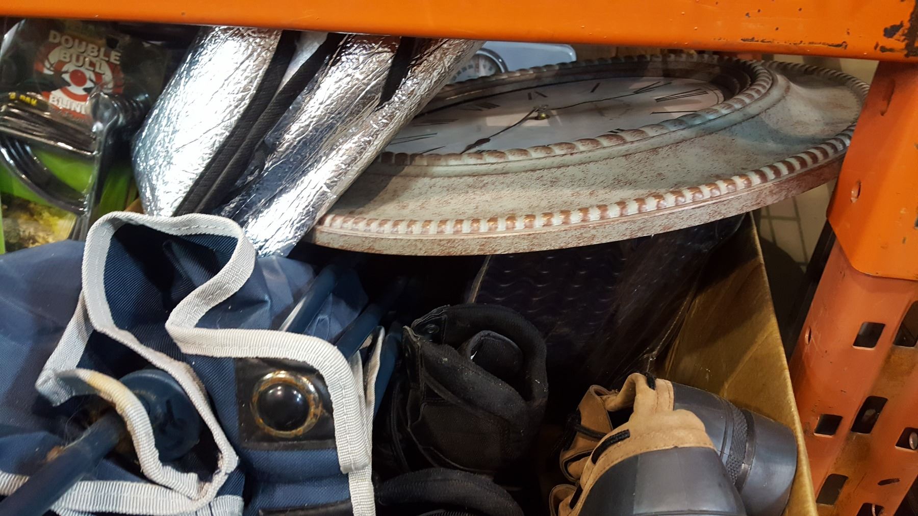 CLOCKS AND FOLDING CHAIR AND SCALE AND ESTATE GOODS
