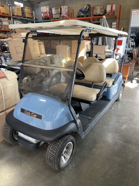 CLUB CAR PRECEDENT ELECTRIC 4 SEATER GOLF CART, REQUIRES BATTERIES AND KEY TO RUN, OTHERIWSE WORKING AND IN GOOD CONDITION