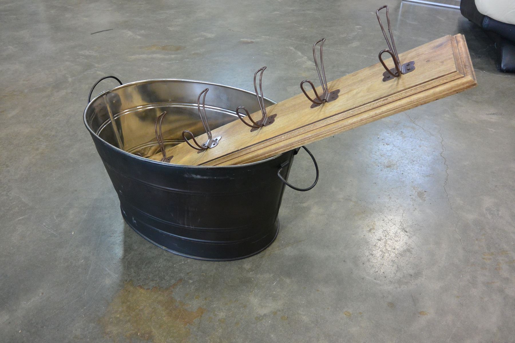 COAT HANGER AND METAL BUCKET