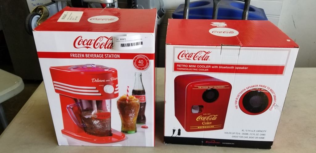 COCA COLA BEVERADGE MAKER AND RETRO MINI COOLER