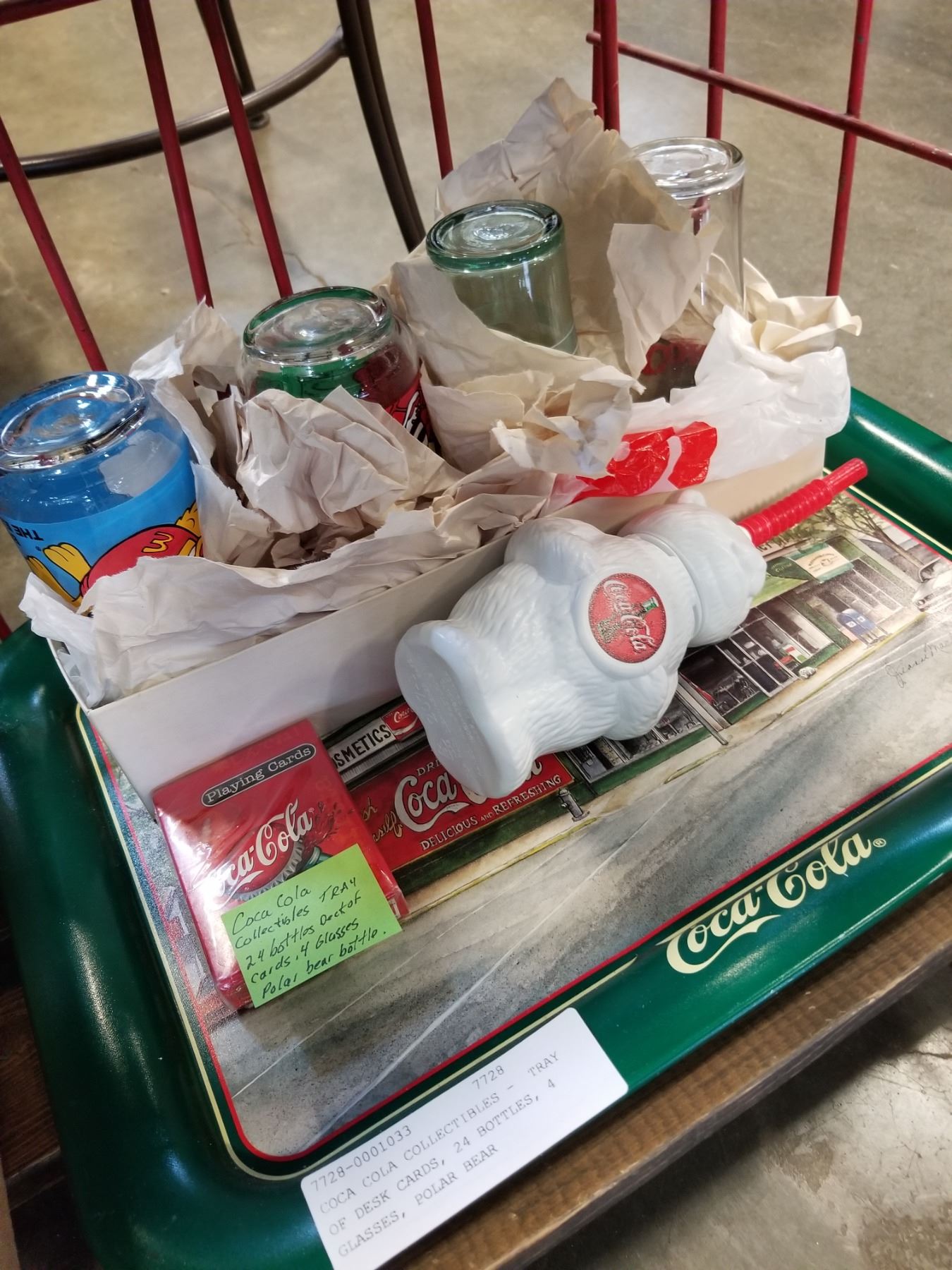 COCA COLA COLLECTIBLES - TRAY OF DESK CARDS, 24 BOTTLES, 4 GLASSES, POLAR BEAR