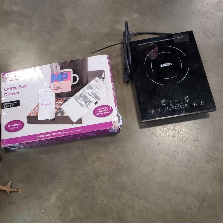 COFFE POD DRAWER AND SALTON 1300 WATT COOK TOP