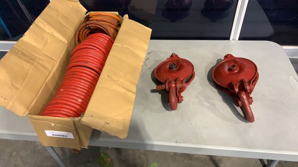 COILED AIR HOSE WITH 2 SNATCH BLOCKS