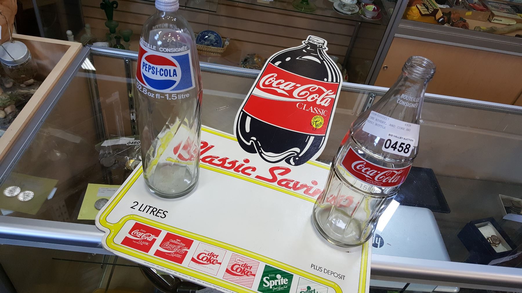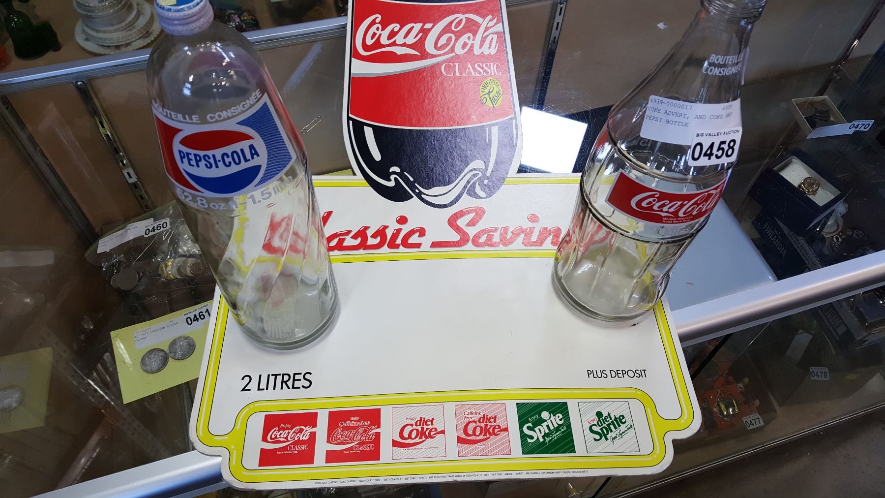COKE ADVERT, AND COKE AND PEPSI BOTTLE