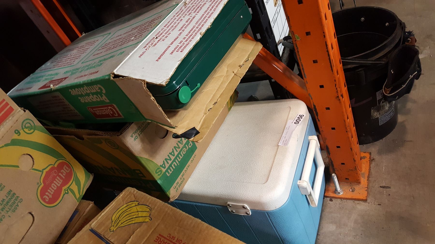 COLEMAN CAMP STOVE, COOLER, AND TENT