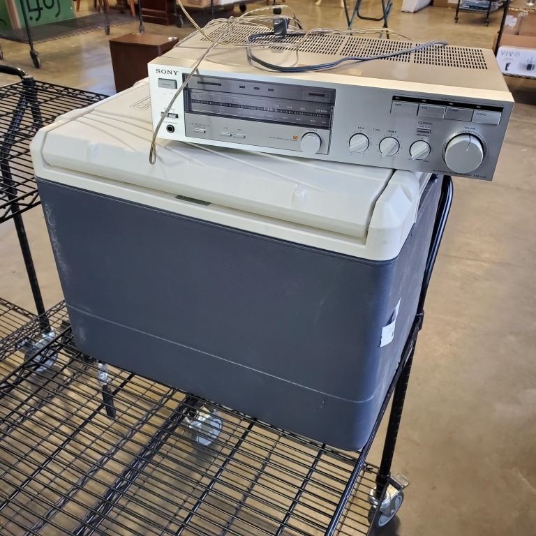 COLEMAN ELECTRIC COOLER AND SONY STEREO TUNER