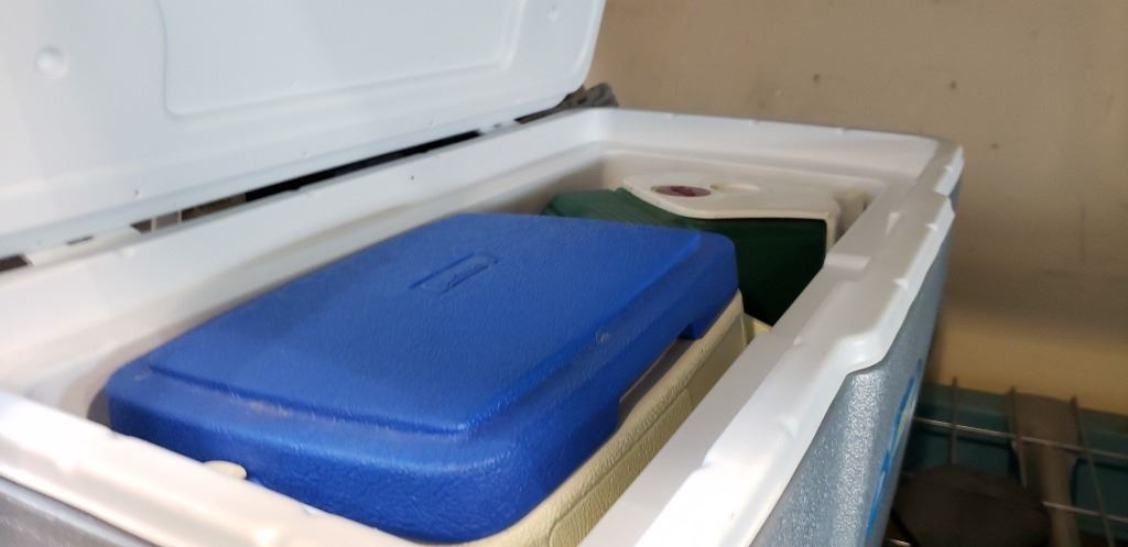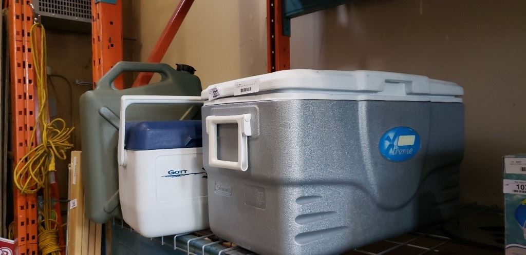 COLEMAN IGLOO AND GOTT COOLERS - 4 TOTAL AND WATER CAN