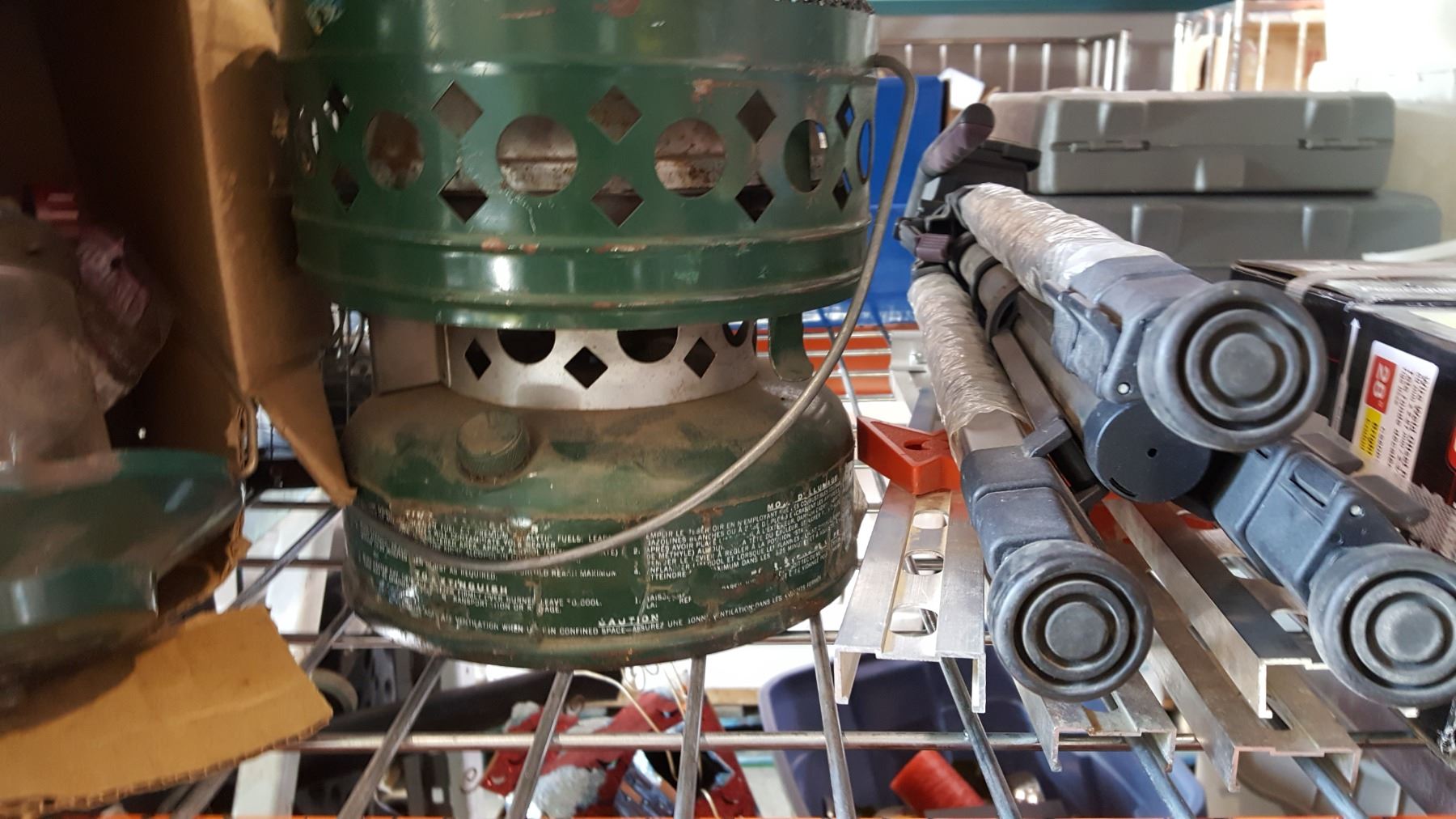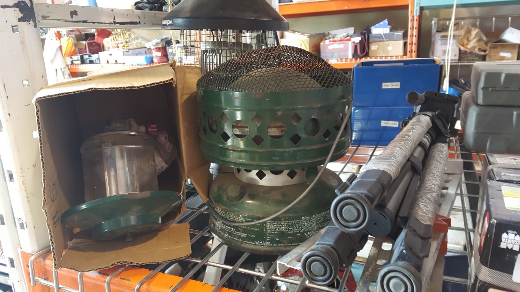 COLEMAN LANTERN AND BUG ZAPPER AND HEATER AND TRIPOD AND PICTURE FRAME MOUNT