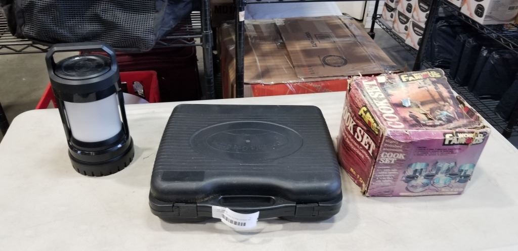 COLEMAN LANTERN, BUTANE COOKER AND ALUMINUM COOK SET